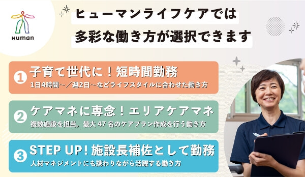 ヒューマンライフケアの居宅介護支援事業所はデイサービスや訪問介護ステーションと併設されているため連携が取りやすく、実態の把握がしやすい事が特徴です。