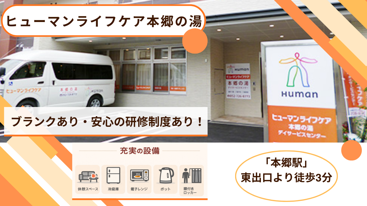 | 施設情報 | ヒューマンライフケア本郷の湯は、愛知県名古屋市名東区本郷2丁目にあるデイサービス(通所介護施設)です。 |