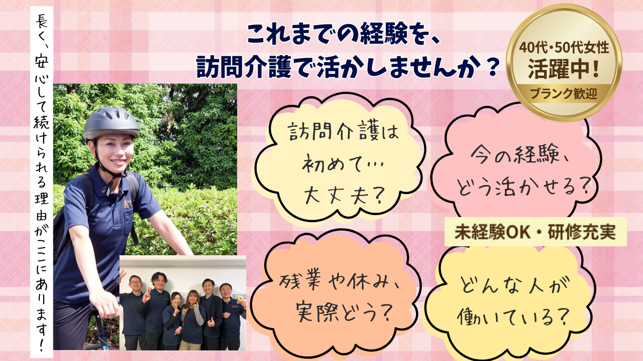 | こだわり条件 | 入社お祝い金 / 未経験・ブランクOK / 週1~OK / 車通勤OK |